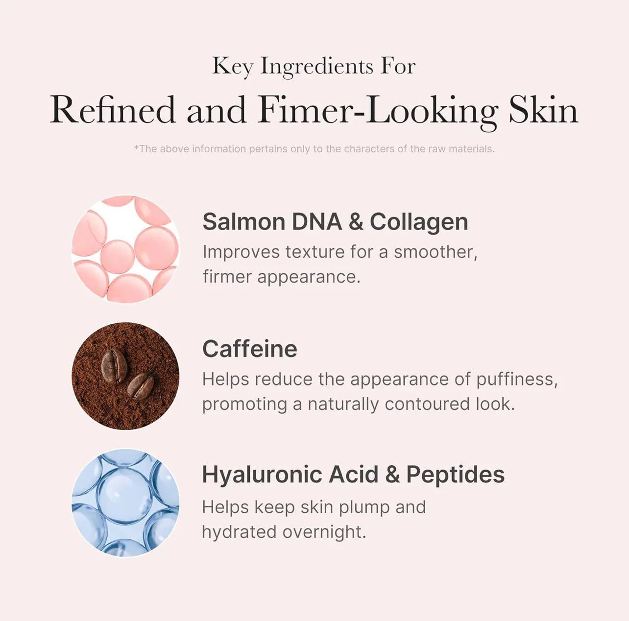هذا قناع اللؤلؤ الوردي اللامع يشكل فيلم شد الجلد أثناء نومك، مشبعًا بـ الحمض النووي لسمك السلمون (PDRN) و الكافيين ل: