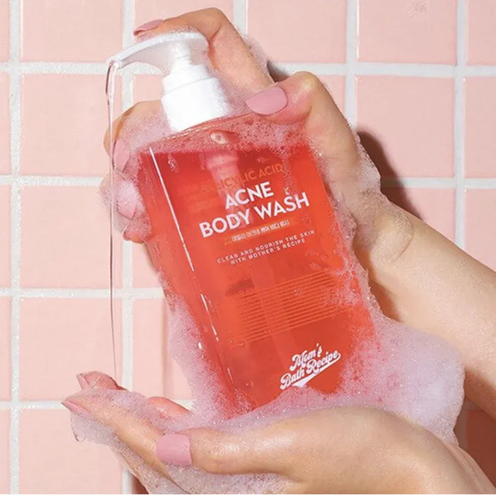 مكافحة حب الشباب في الجسم، والمسام المسدودة، والملمس الخشن مع وصفة حمام الأم، غسول الجسم لعلاج حب الشباب بحمض الساليسيليك ، منظف من منتجات التجميل الكورية غني بـ 2% حمض الساليسيليك (BHA) و مستخلص شجرة الشاي لتقشير البشرة بعمق وتنقيتها وتهدئتها. تركيبة الجل المنعشة هذه تزيل بلطف العرق وبقايا العواصف الرملية والزيوت الزائدة، مع منع نمو الشعر تحت الجلد وحب الشباب - مثالية لمناخ الكويت الرطب. غني بـ يحتوي على مستخلص السنتيلا الآسيوية والبانثينول ، ويعمل على تهدئة الالتهابات وتقوية حاجز الجلد دون الإفراط في التجفيف.