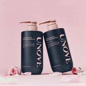 الشطف : اغسل الشعر جيدًا. استخدم بعد ذلك علاج UNOVE Deep Damage Treatment EX للحصول على أفضل النتائج.