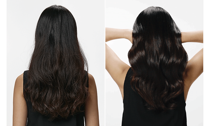 الشعر الجاف : وزعي كمية صغيرة على الشعر الجاف لتجديد تسريحاتك أو لتهدئة التشابك.